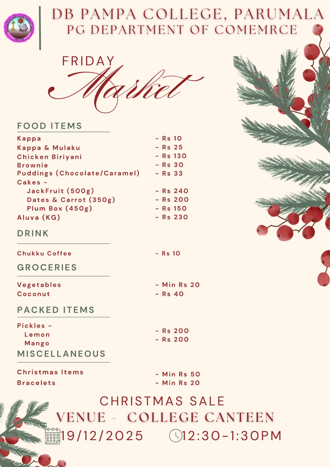 The P.G. Department of Commerce organized “Friday Market : Christmas Sale” on December 19, 2025, at the college canteen held […]