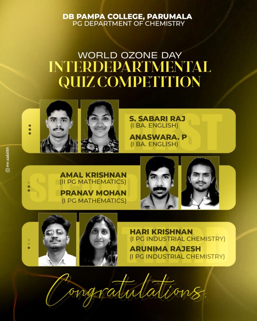 International ozone day was observed on 20.09-2025. Inter departmental Quiz competition was organized based on the topic” -From science to global action-“. Two students as a team from 8 departments participated in the program.