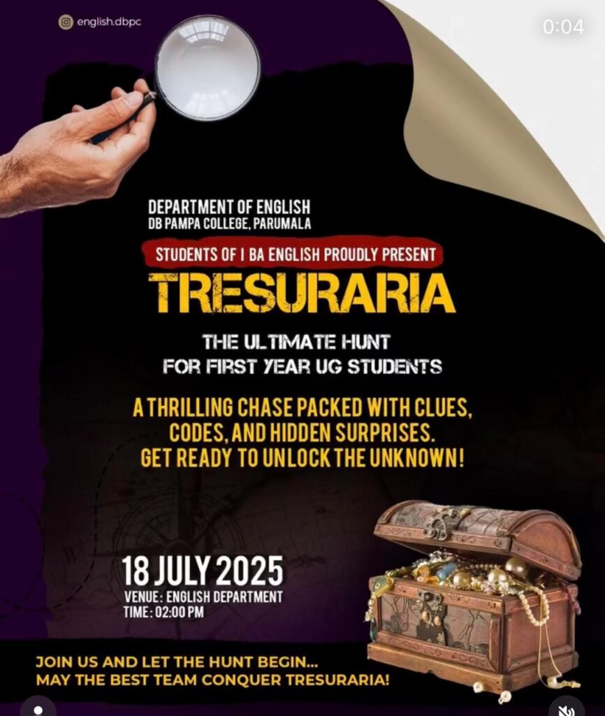 Tresuraria: The Ultimate HuntThe Department of English at D. B. Pampa College, Parumala, organized an exciting treasure hunt event titled